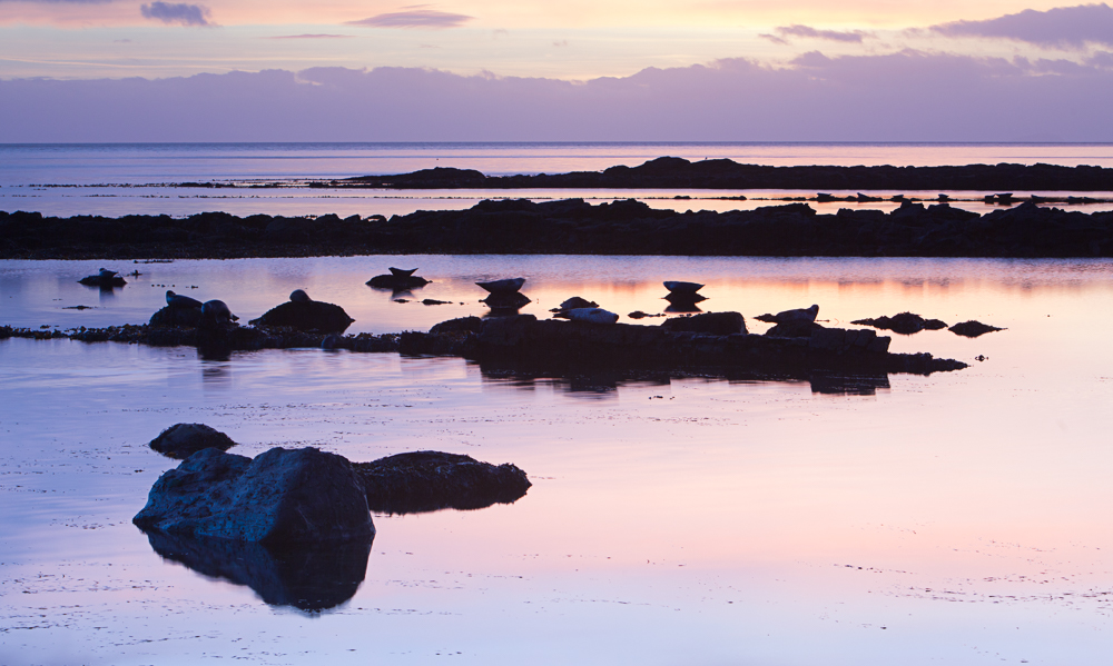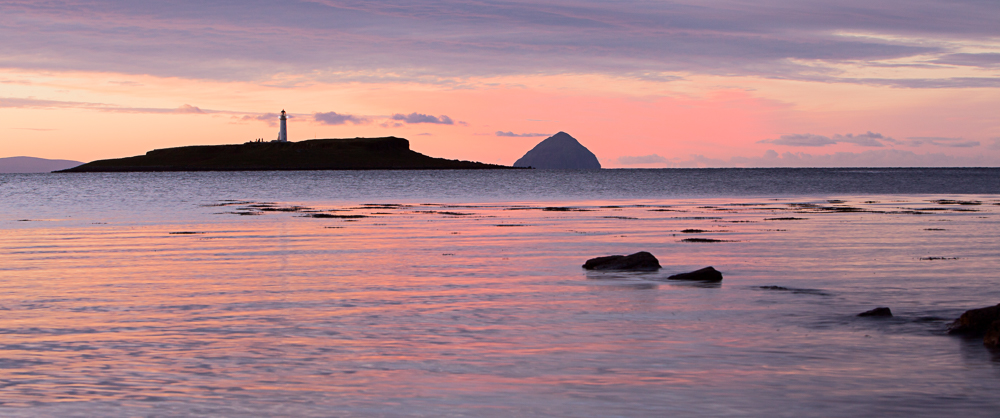 Six more from my trip to Arran last week—this time in colour and showing some of the great sunsets and weather. The lighthouse is on Pladda, off the south coast of the island, and viewed here from near Kildonan. The seals are a little further west along the coast, reached from the footpath that runs just above the beach. The boulders are on the east coast at Pirates Cove, next to a little parking space off the main road. The remaining three images are all from Blackwaterfoot around sunset on different days.