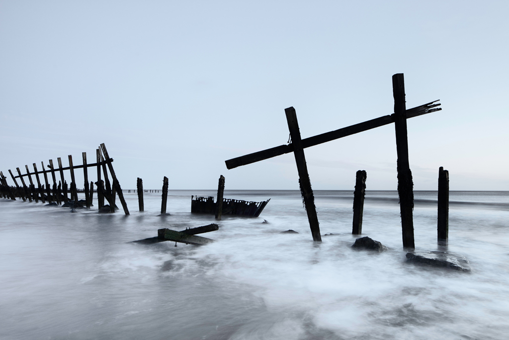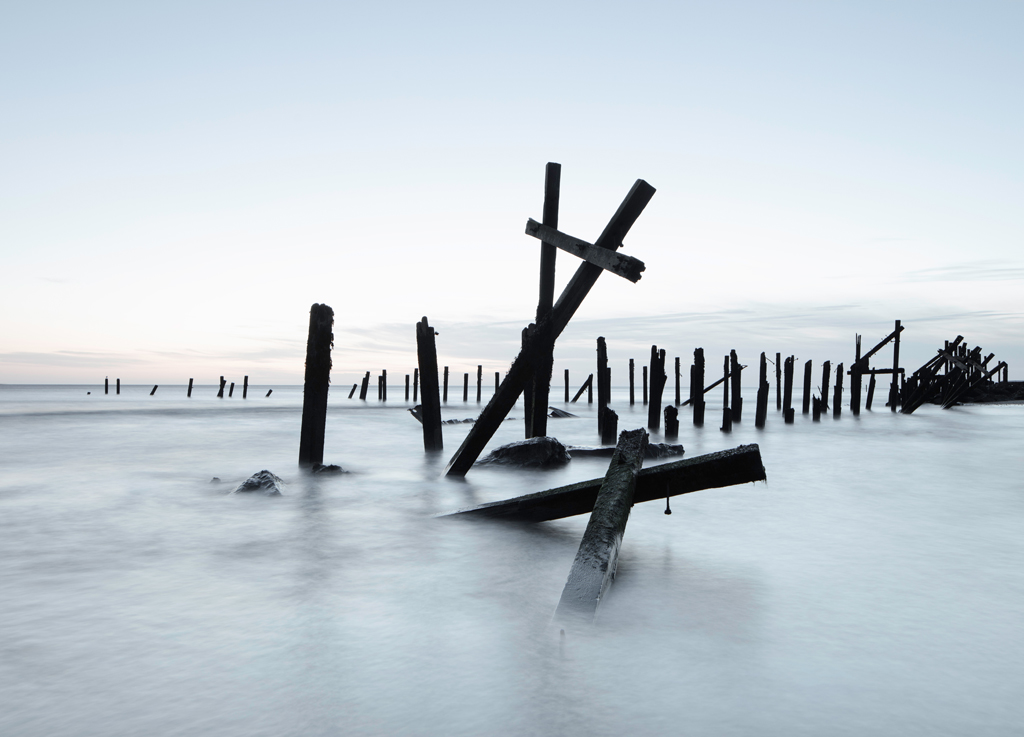 A recent visit back to one of my favourite locations: the old sea defences at Happisburgh. I had been hoping for some dawn colour here, but that didn't work out and so I have left these almost monochrome with very little processing. As the cliffs have eroded and the level of the sand has fallen, some of the posts are now so far out that I'm not sure they are ever fully exposed. Closer to dry land, it is always a challenge getting clean compositions of the posts here given all of the potentials for shapes overlapping one another, and limited opportunities for moving around without getting a soaking.