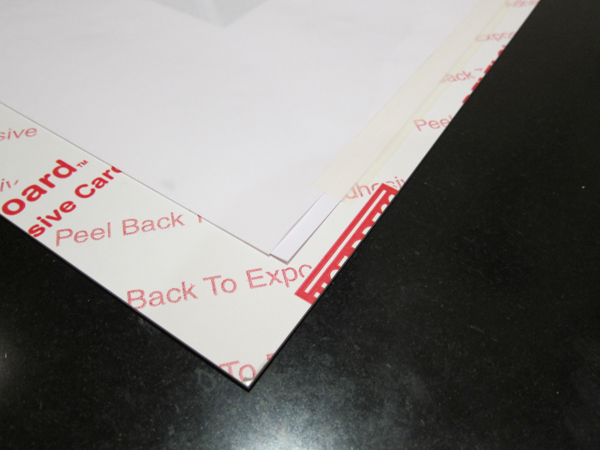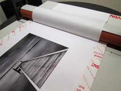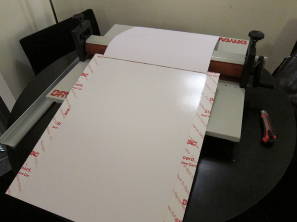 ...and then peeled back the adhesive backing on the mount board before passing it through the rollers a second time to stick the print down onto the board. |