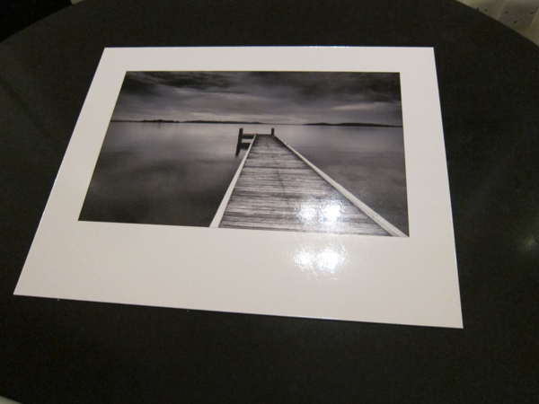 I now had the print covered with the laminating film for protection, but not yet stuck to the board. I went around the edge of the paper with a knife to cut into the adhesive backing of the mount board. |